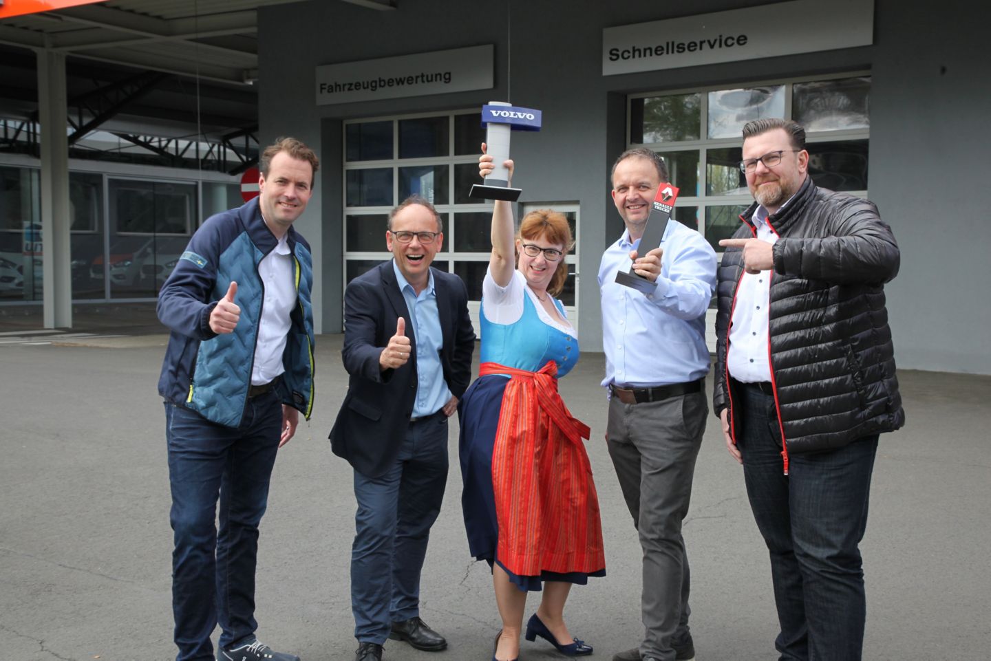Autohaus-Uitz.jpg: Mit der Autohaus Uitz GmbH hat die Volvo Group Austria GmbH seit 1. Juni 2022 auch in der Südoststeiermark einen innovativen und zukunftsorientierten Werkstattpartner. Am Bild (v.l.n.r.): Pascal Job, Aftermarket Manager Volvo Trucks; Gerhard Winkler, Geschäftsleitung Autohaus Uitz GmbH; Jutta Köhldorfer, Geschäftsleitung Autohaus Uitz GmbH; Herbert Winkler, Geschäftsführung Autohaus Uitz GmbH; Dragan Gajic, Verkaufsleiter Renault Trucks.