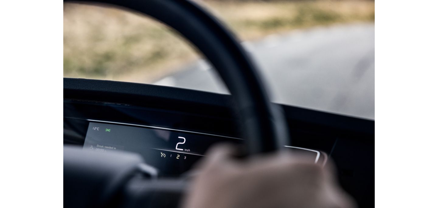 Das Feature ermöglicht ein langsames und kontrolliertes Überfahren eines Hindernisses, z.B eines größeren Steins oder einer Bordsteinkante. Ein hastiger Wechsel vom Gaspedal auf die Bremse ist nicht nötig, da die neue Terrain Brake ein schnelles Abrollen vom Hindernis automatisch unterbindet. Das Fahrzeug hält seine Position und über das Gaspedal wird ein präzises Abfahren vom Hindernis gesteuert.